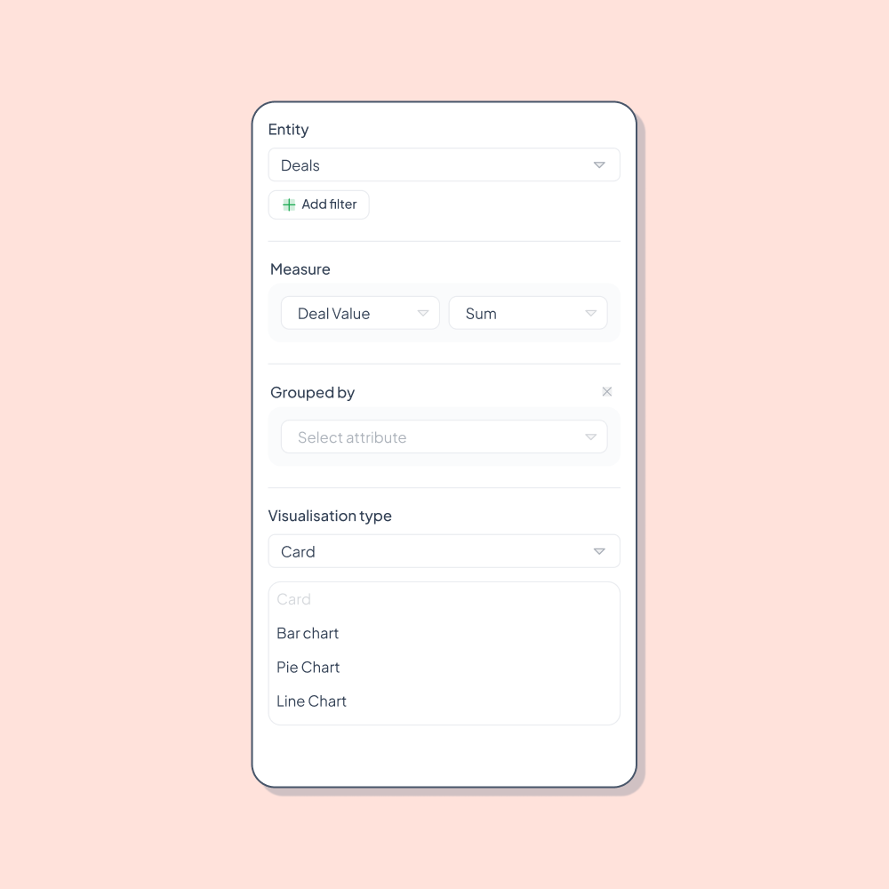 Customise fields, pipelines, and dashboards without writing a single line of code. Perfect for startups that need speed, not technical setup.