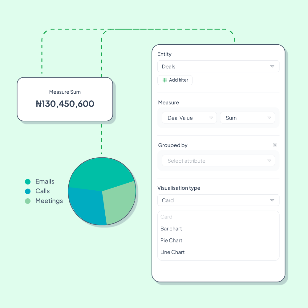 Turn data into charts, bars, and metrics that are easy to read at a glance. It’s CRM dashboards designed for real teams, not data analysts.